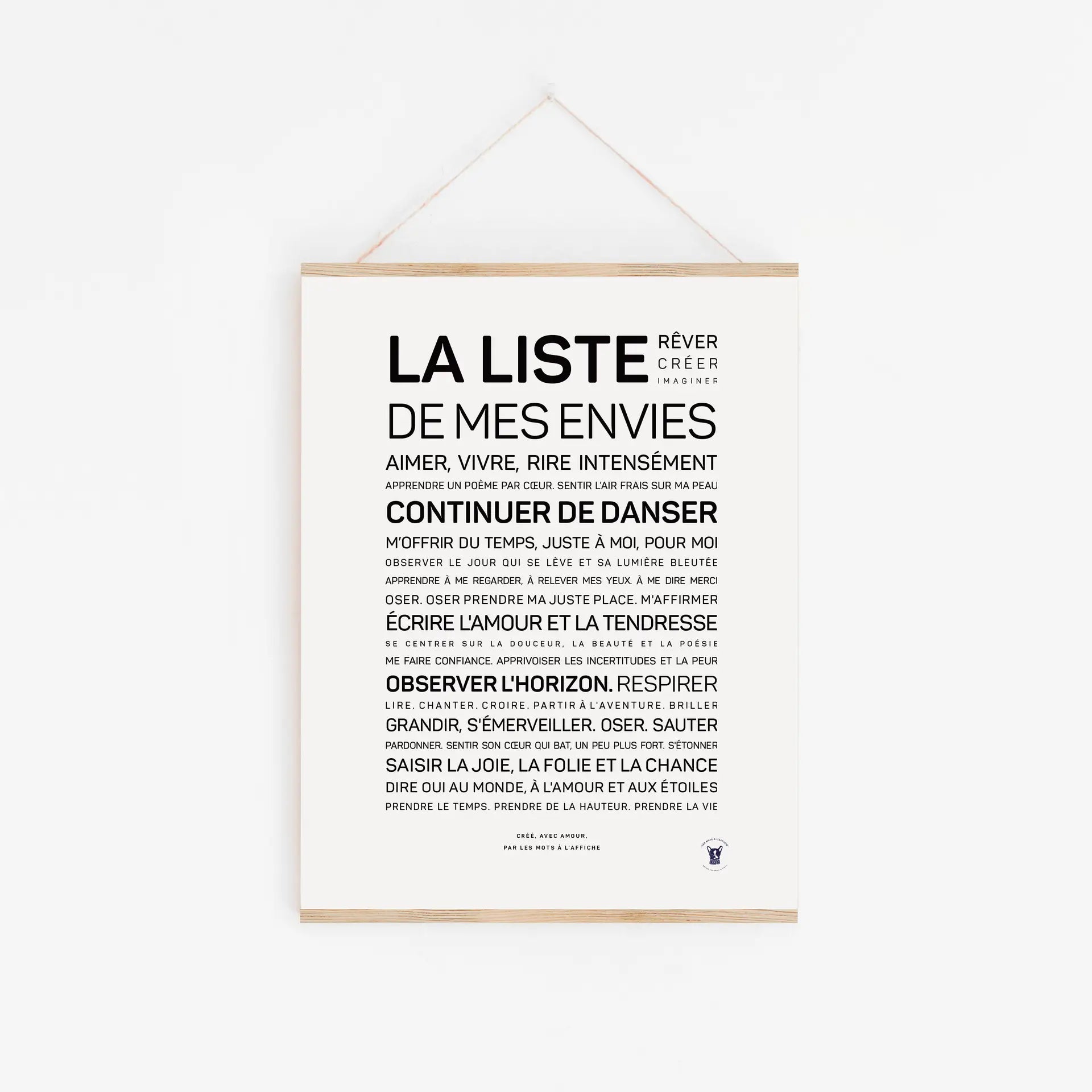 L’affiche « Liste de mes envies » est une création inspirante qui invite à poser par écrit ses désirs, rêves et projets — grands ou petits.