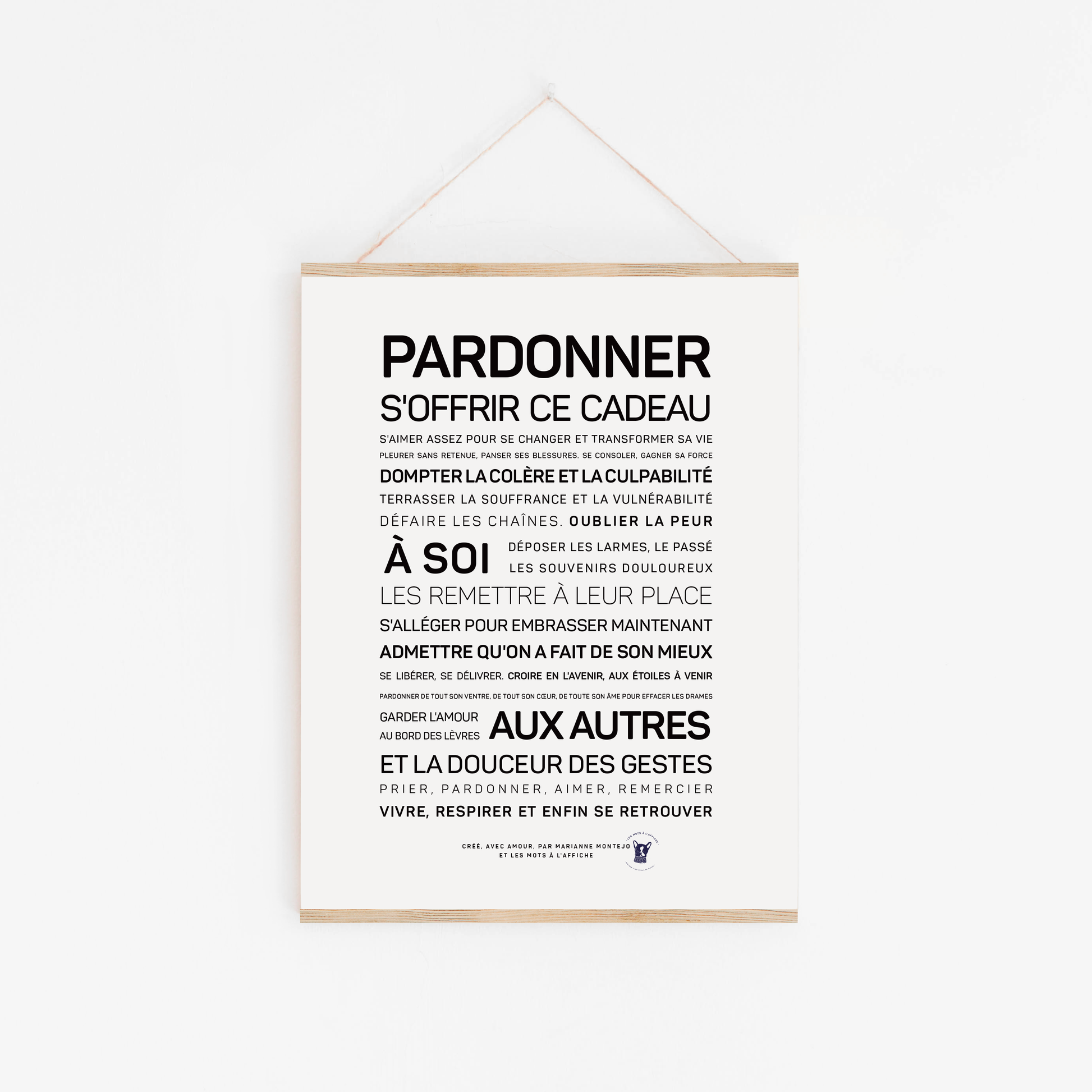 L’affiche « Se Pardonner » nous invite à la bienveillance envers soi-même et envers les autres. Véritable hymne à la guérison émotionnelle, elle nous rappelle que le pardon est un cadeau que l’on s’offre, une manière d’alléger son cœur et de transformer sa vie.