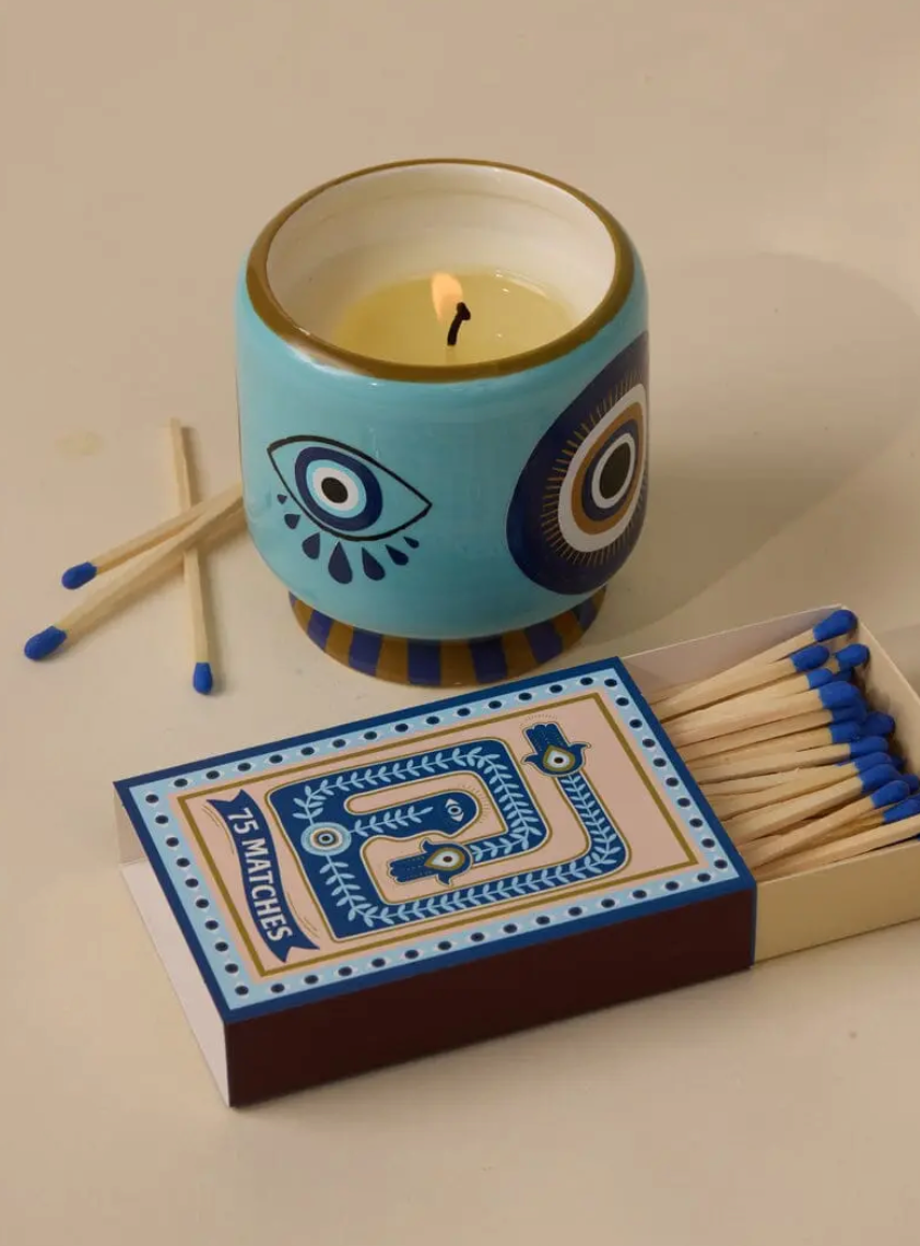 Set harmonisé : accompagnez une bougie A Dopo “Eye” avec ces allumettes assorties pour un cadeau coordonné.