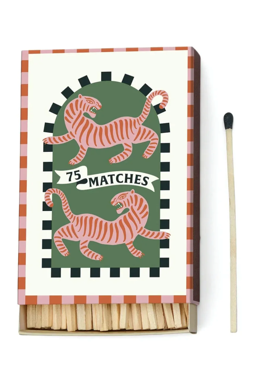 Une boîte de 75 allumettes de sécurité signée Paddywax, décorée d’un motif tigre noir très graphique. Élégante et audacieuse, cette boîte incarne la puissance tranquille et le voyage méditerranéen caractéristique de la collection A Dopo.