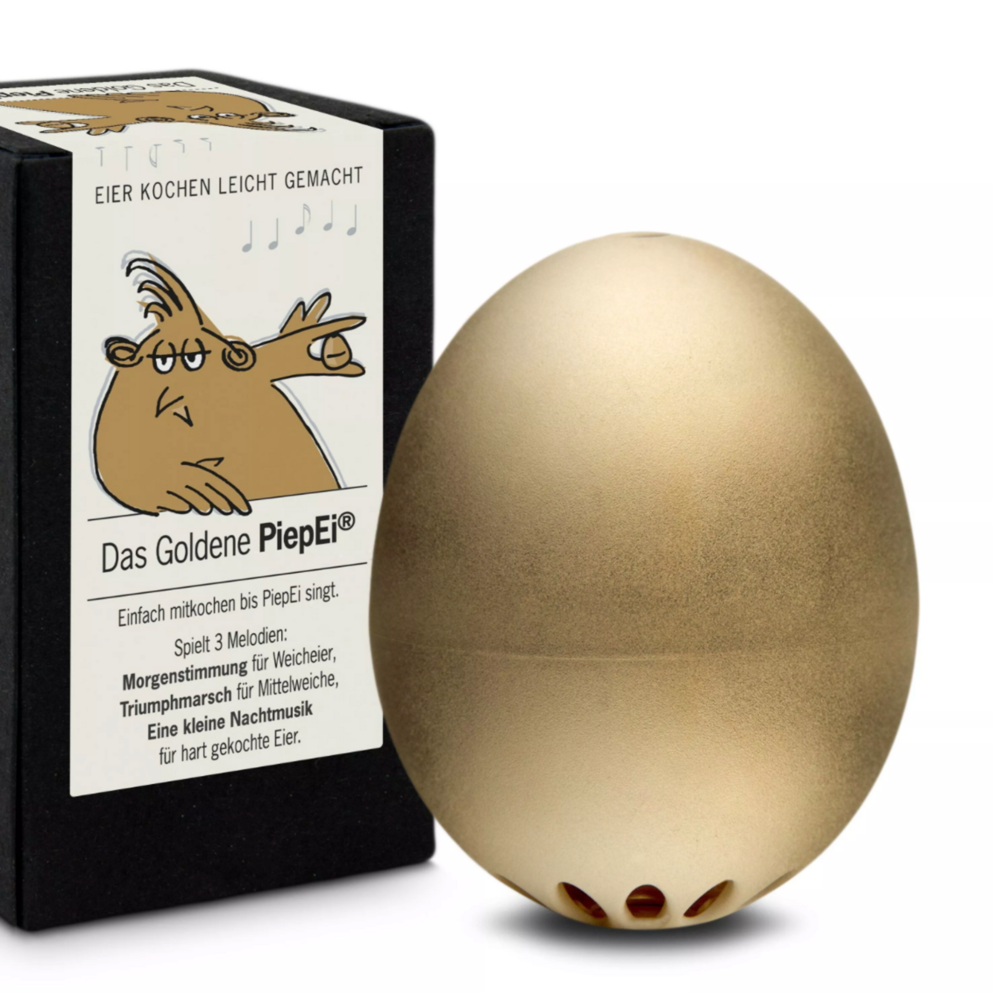 Trop dur, trop mou, mais jamais parfait. Un œuf à la coque parfait est une science. Un jeu d'enfant pour BeepEgg, en revanche. Il suffit de le ranger avec les œufs, de le faire cuire avec les œufs et d'attendre que BeepEgg chante la mélodie qui correspond à votre niveau d'œufs préféré. Il jouera une mélodie pour les œufs à la coque, une pour les œufs à point et une pour les œufs durs.