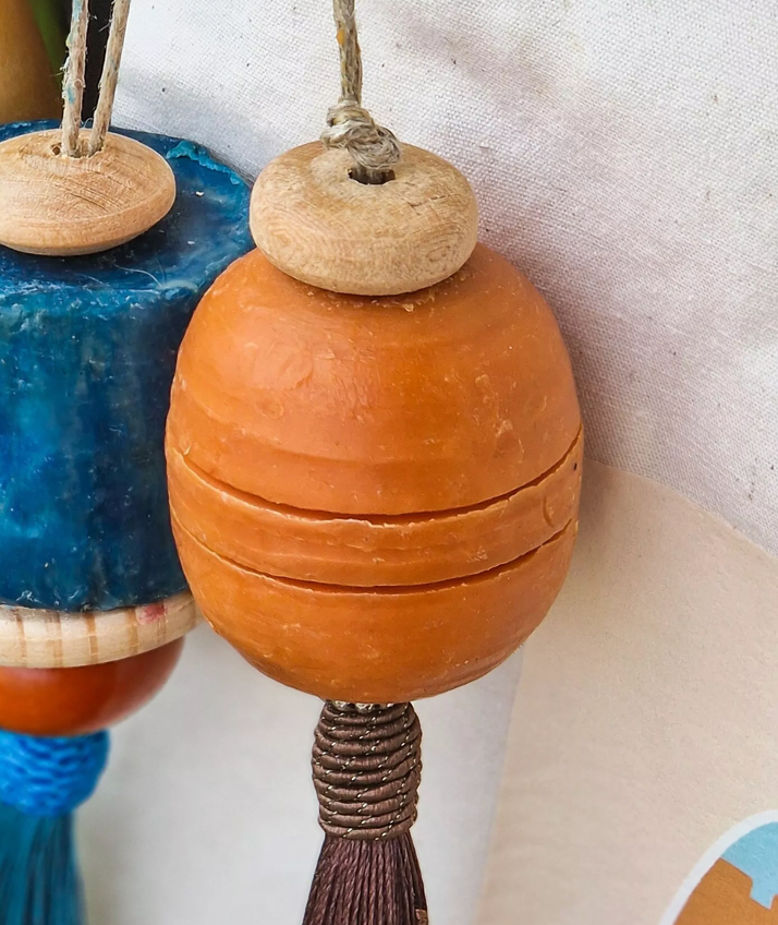 Accroché dans une salle de bain, un dressing ou une entrée, ce savon parfume délicatement la pièce tout en ajoutant une note de caractère et de couleur.