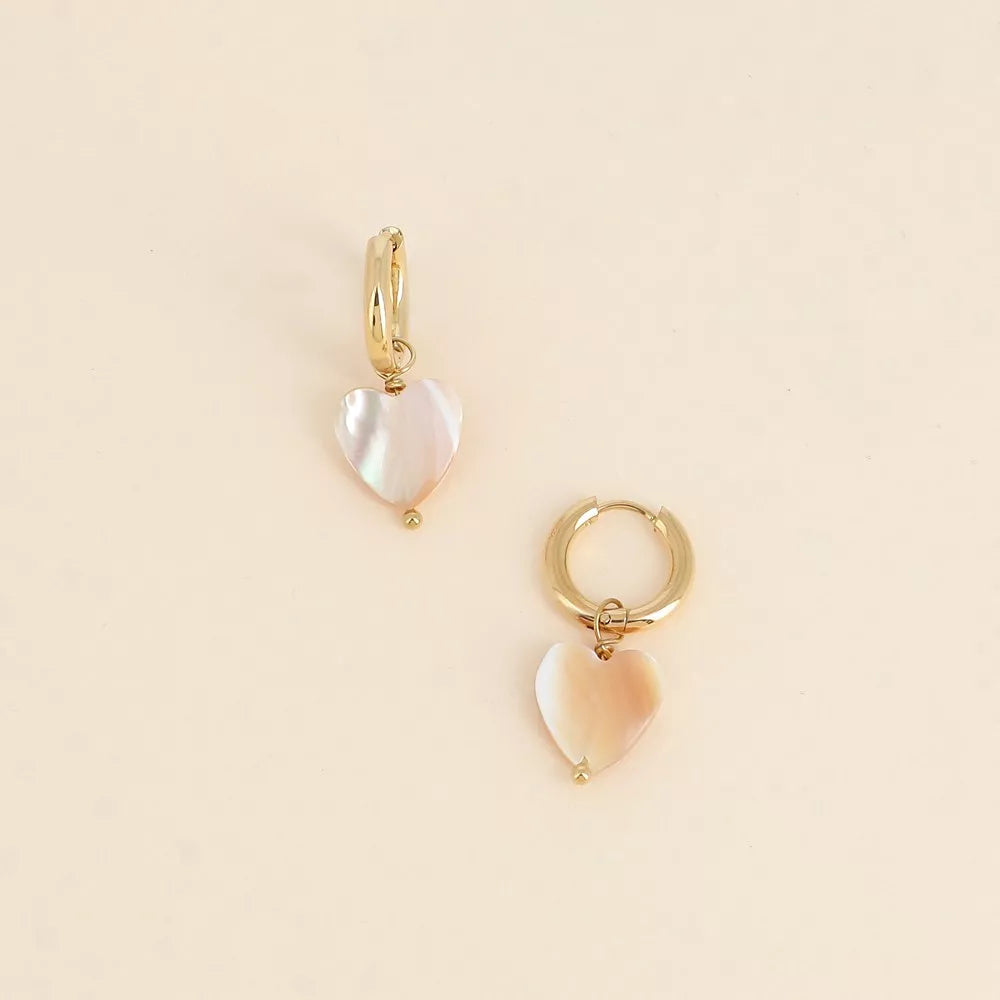 Ces mini créoles dorées sont ornées d’un pendentif cœur en nacre naturelle, offrant un équilibre parfait entre douceur et éclat. Leur format discret en fait un bijou du quotidien, à porter seul ou en accumulation pour un style délicat et lumineux.