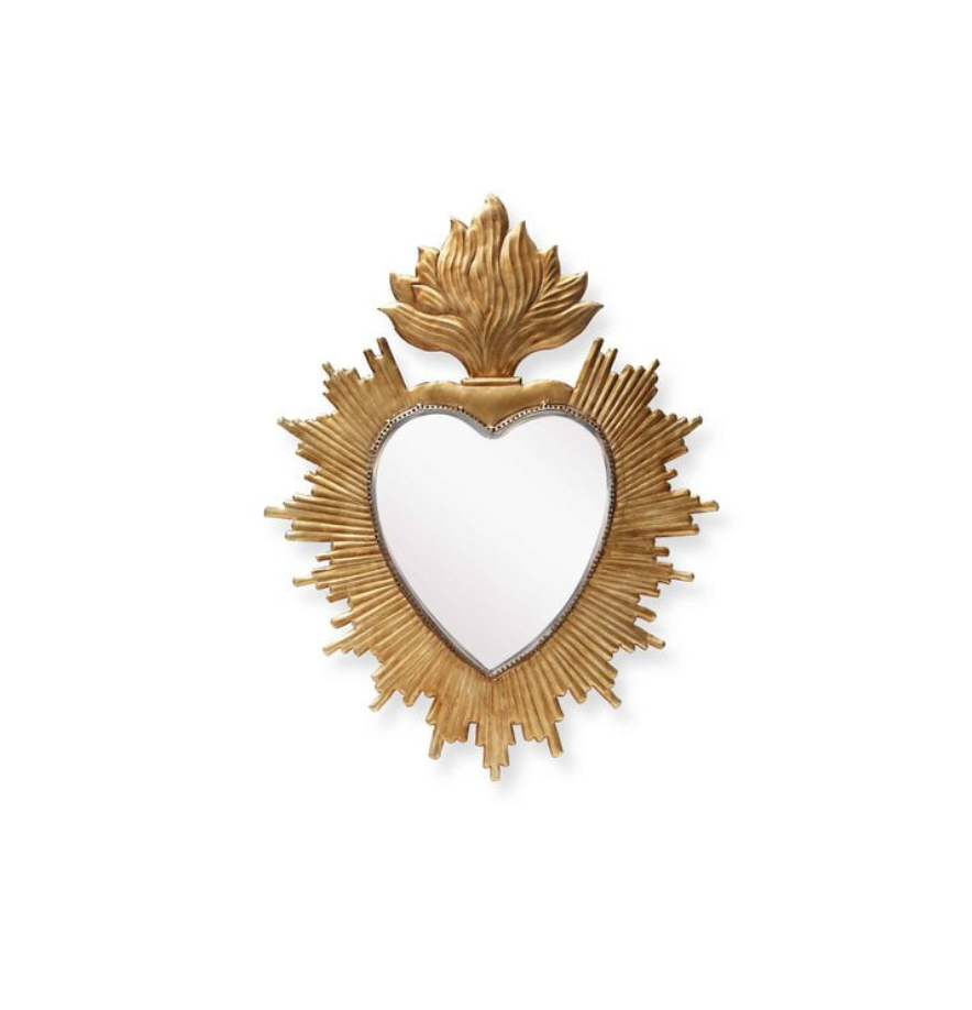 Inspiré des ex-voto traditionnels revisités dans un esprit baroque chic, le miroir Cœur Radieux s’intègre parfaitement dans des intérieurs bohèmes, spirituels, éclectiques ou même contemporains en quête d’une pièce forte.